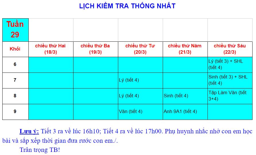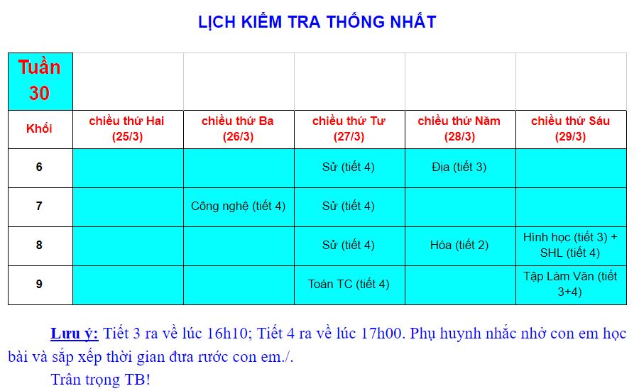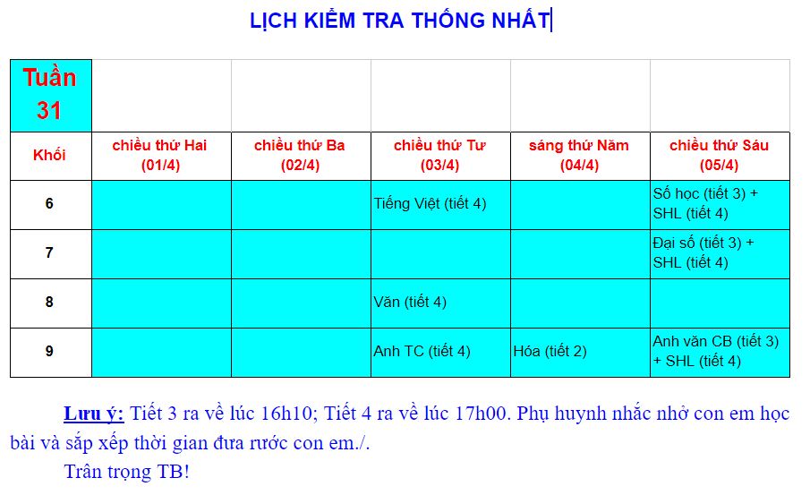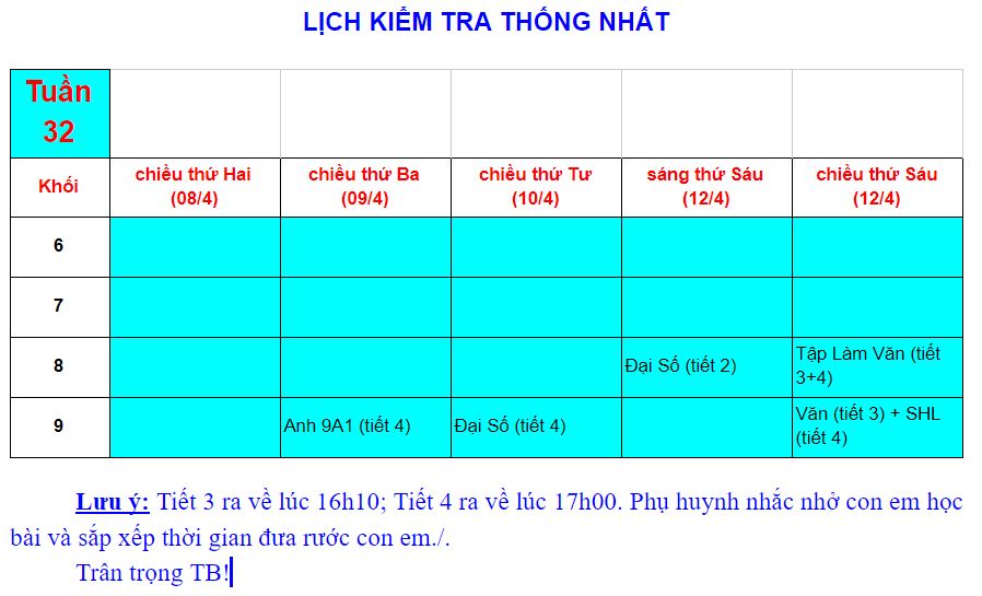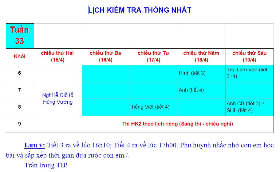 Kế hoạch Kiểm tra cuối Học kỳ 1 (2022-2023)