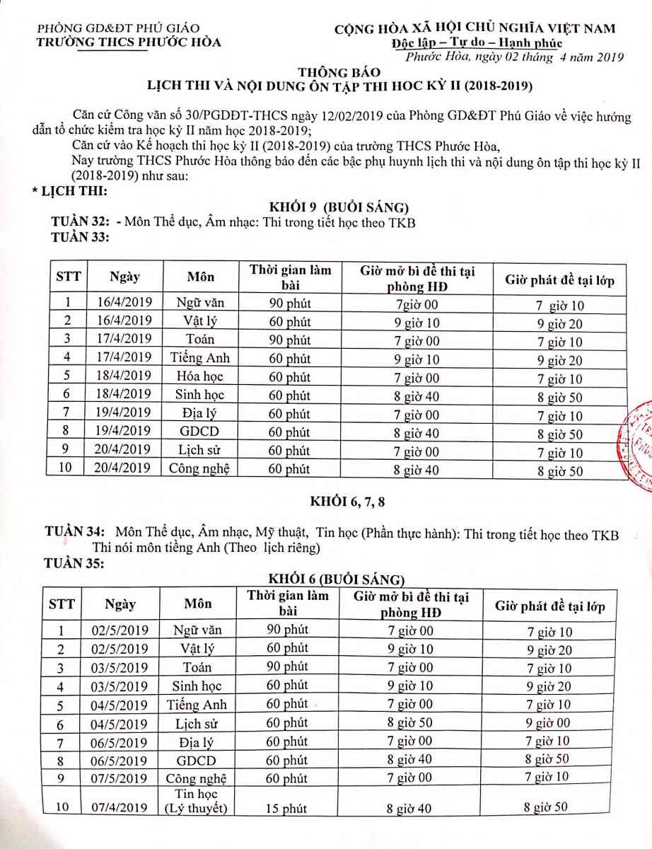Quyết định tổ chức lại trường THCS Phước Hòa